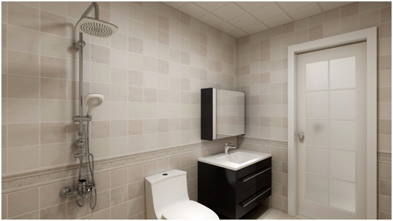 此卫生间进门右手边为浴室柜,镜子背靠东侧,镜子没有直对门和坐便,因为从风水上讲,马桶为污秽之物,不能去“照镜子”。虽然卫生间空间比较小,但是整个卫生间的功能并没有减少,浴室柜的简单储物,洗衣机上方的空间利用,单独的淋浴设计做到了干湿分区,使得卫生间充分的利用的空间。墙面采用300*300的小砖铺贴,使得整体墙面比较丰富,不是那么单一。