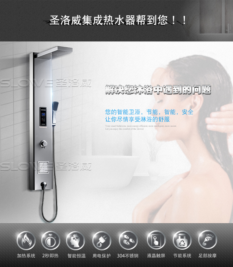 商品名称:圣洛威(SLOWEI) SL-M55-01 即热式电热水器 智能变频恒温 集成淋浴屏热水器 Q1 洗澡 淋浴品牌:圣洛威(SLOWEI)产地:中国广东佛山市热水器类型:即热式热水器外形尺寸(长×宽×高):1500*290*200毫米净重:11千克控制方式:微电脑式是否可浴室安装:是超温?;ぃ?5摄氏度