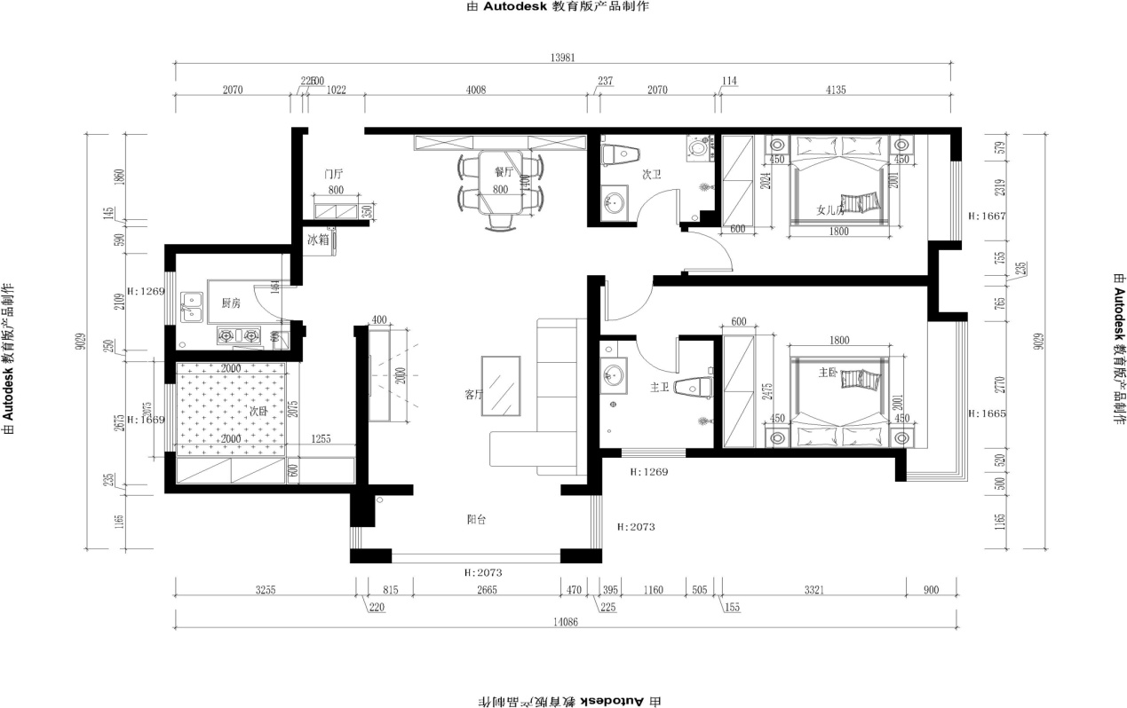 1. 厨房空间比较窄,没有放置冰箱的位置,