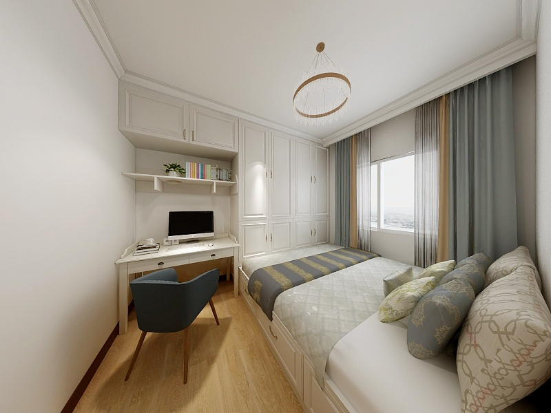 临窗而坐,纱帘半合。安享属于自己的时光,整个卧室区域素雅大方,整体以暖色调为主,柔和的色彩使人随意、放松的心情驻留在房间里,使得紧凑的空间具有视觉延伸和放大空间的效果。床头灯总是在需要它的时候暖暖的陪伴在主人的身边。