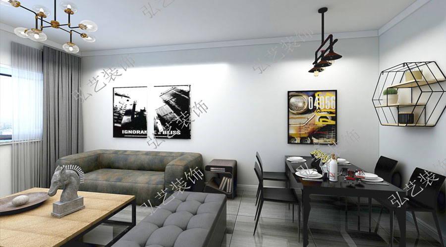 考虑到整体色彩不易偏暗,所以客厅和餐厅采用彩色的装饰画点缀,让整体效果更简洁,明快。家具采用深色对比色,使得整体空间更清新活跃。悠闲的时候喝着下午茶,阳光温暖着整个空间,所有生活的烦恼都抛之脑后。