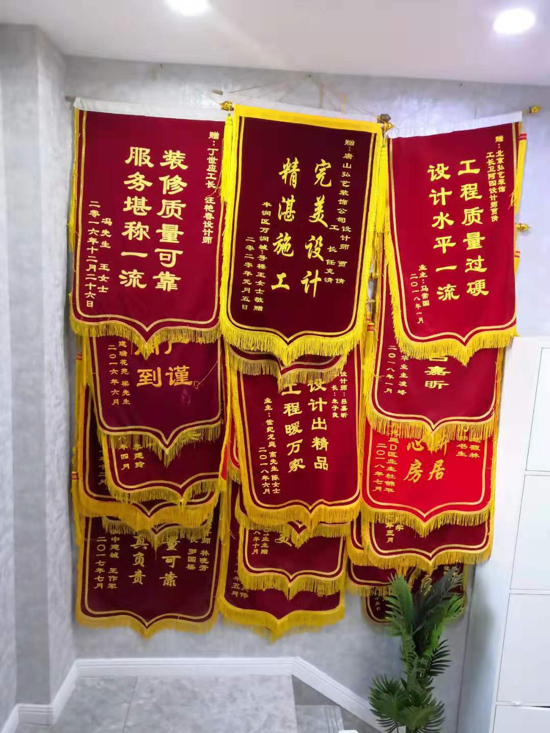 弘艺装饰本着诚信为本的原则,在2019年整个项目组团队积极合作,为呈现业主心目中的家用心打磨,不负业主的厚爱与重托!在这里也感谢广大业主选择弘艺,让客户无忧置家是我们的使命,相信很多业主也是走访了很多家公司,经过千挑万选才选择与我们合作,这是对我们最大的信任,我们定当竭尽全力,不辱使命,为每位业主打造一个温馨浪漫的家!同时也感谢我们诚信服务过的业主不辞辛劳为我们公司献上的锦旗,这是对我们最大的认可!