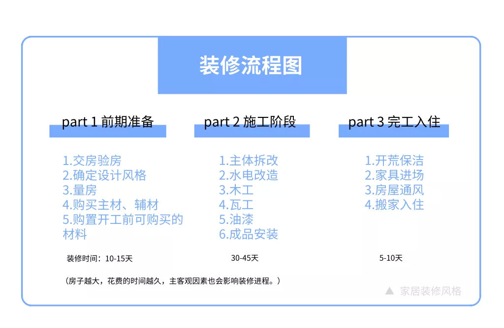 所以,对于装修小白来说,熟知装修流程是很有必要的。今天,糖糖专门整理了一篇新房装修流程,希望能给大家一个参考和借鉴,起码心里有底。