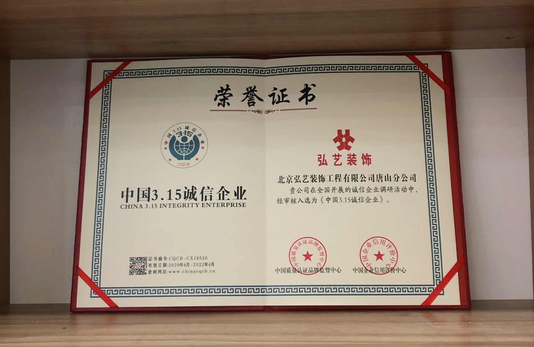 昨日店内也传来捷报,北京弘艺装饰唐山分公司再次斩获殊荣,在全国开展的诚信企业调研中,荣幸入选3.15诚信企业,又一次体现了中国质量检验协会和广大消费者用户对弘艺装饰的认可