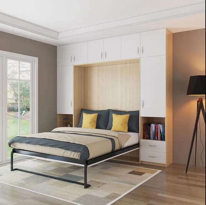 与传统的大床相比,壁床更节约空间,白天掀起隐形壁床,房间空旷,保障家人有足够的活动空间。